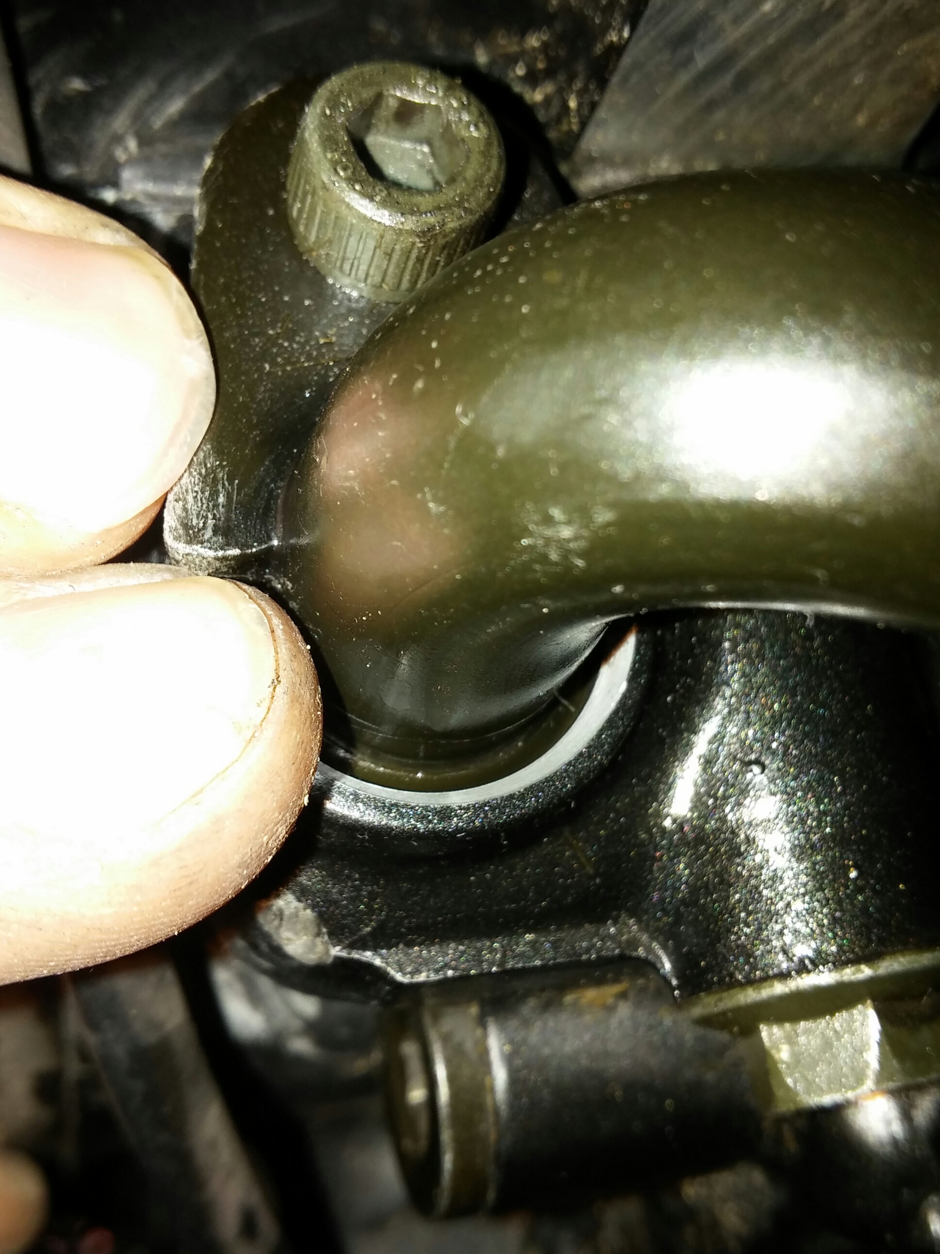 Witam panowie na niżej załączonych zdjęciach widać rurkę z pod której zauważyłem że ( poci ) sie olej jest to naprawde minimalne nawet nie nazwał bym tego poceniem, w każdym razie po dokładnym wytarciu i przejażdżce znów pojawia sie odrobinka oleju, i tu moje pytanie jest tam jakaś uszczelka ? Pytam bo będę zmieniał olej i chciałbym sie zaopatrzyć w taką uszczelke. Z góry dzięki za odp.