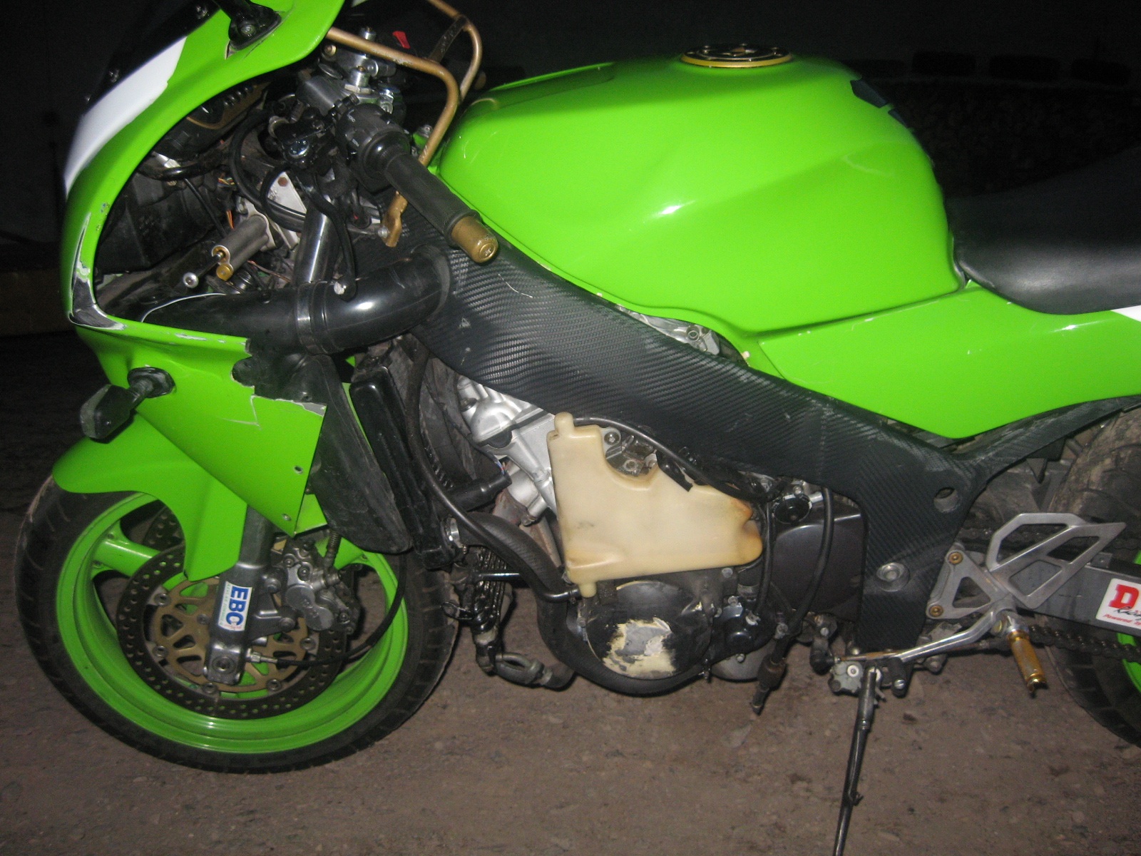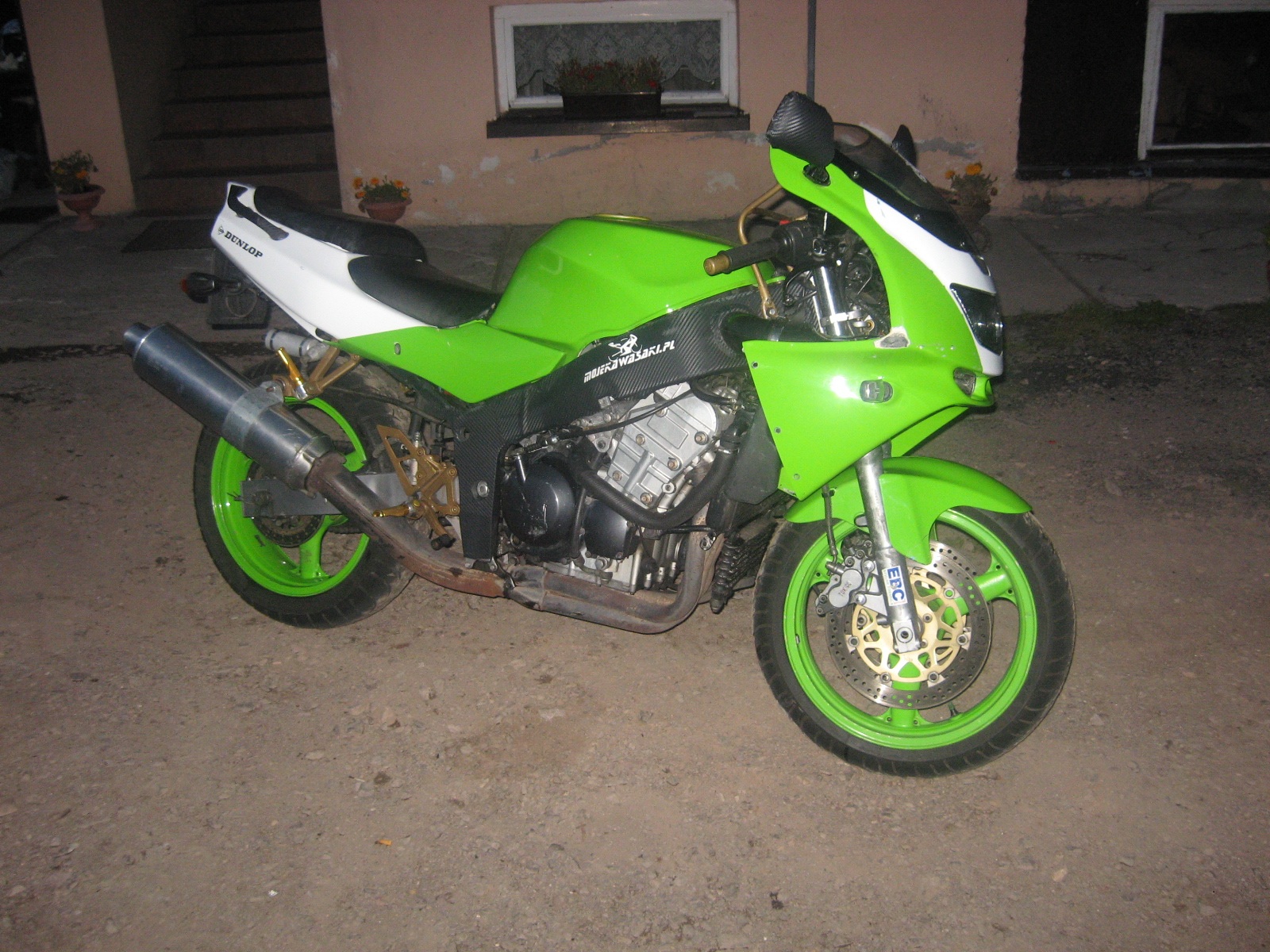 siema ja w poprzednim moto odwaliłem ramę w folię carbonową i półkę górną i później lusterka i rączki dla pasażera. powiem tak wygląda to fajnie przynajmniej dla mnie, pierdzielenia się z tym było od groma i nerwów heh :evil: no i niestety po jakimś czasie folia zaczęła się odklejać delikatnie, najbardziej z lusterek (podejrzewam że dlatego że samodzielnie ją kładłem bez niczyjej pomocy)..choć nie powiem że nie raz jechałem w deszczu i moto też myłem normalnie karcherem...daje kilka fotek (lewa strona trochę zniszczona po wypadku)