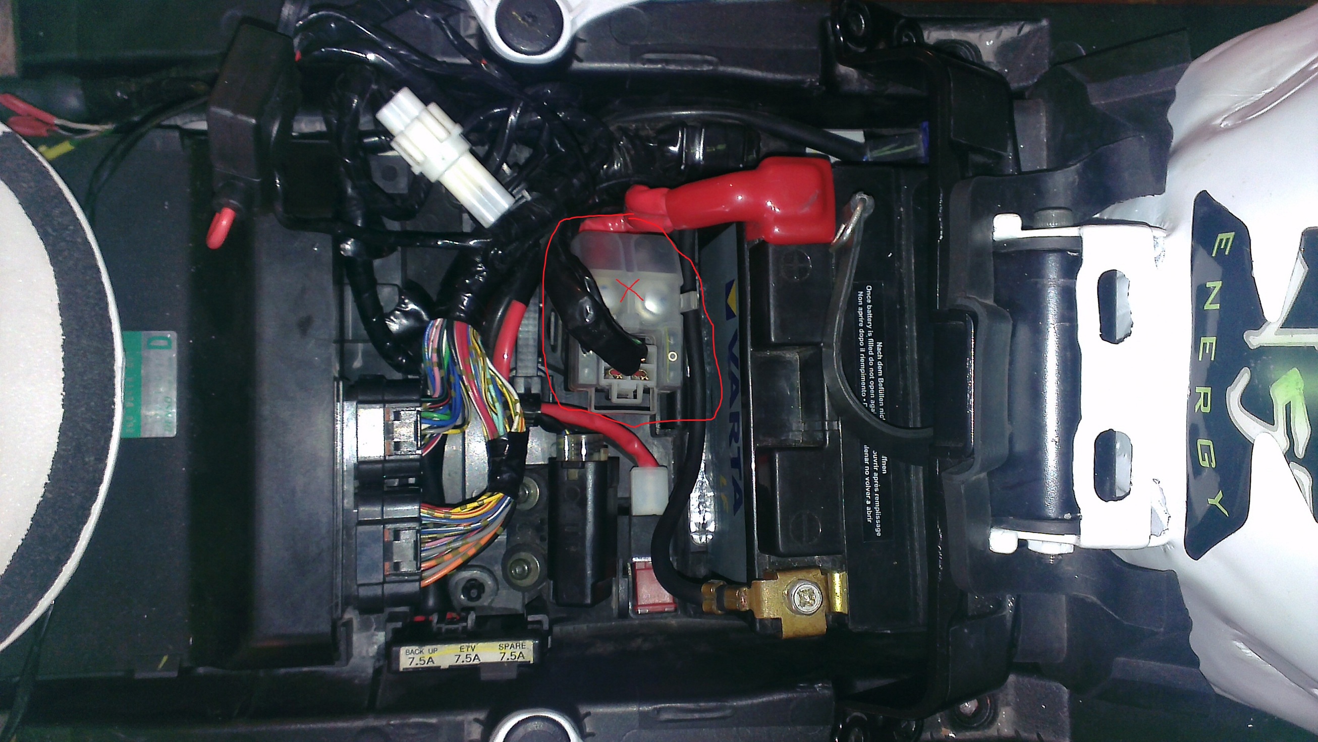 Dzisiaj zastała mnie nie miła niespodzianka. Otóż podchodze do moto przekręcam kluczyk, obrotomierz stanadrowo leci do odciny, przyciskam czerwony przycisk, słyszę pompe paliwa, przyciskam rozrusznik i bam. Słyszę brzdęk, jakby zwara pod siedzieniem, założony mam tylko zadupek więc wszystko na wierzchu. Po kilku próbach doszedłem do tego że to urządzenie zaznaczone na zdjęciu generuje ten dźwięk, nie było trudno do tego dojść wystarczyło położyć palec i przycisnać rozrusznik, ewidentnie dźwięk wydobywa się własnie z niego ponieważ, aż drga. Starałem się sprawdzić napięcię na kablach przed i za urządzeniem i wszystko wydaje się ok 11,7V przed i za. Dodam tylko że mam założony w niej Alarm, który od kiedy ją kupiłem (11 miesięcy temu) nie działał, ale nie sprawiał żadnych niespodzianek. Moto 2 tygodnie temu paliło na strzała, pochodziła rozgrzała się, odkręciłem aku naładowałem, odstawiłem w ciepłe miejsce. Przed założeniem aku mialo 11.6V i raczej wykluczam akumulator. Bezpieczniki posprawdzałem wszystkie w koło i też są ok. Starałem się sprawdzić kable gdzie tylko miałem dostęp. Próbowałem odpalić w ciemnym garażu, żeby ew. zaobserwować przeskok iskry w czasie zwary, niestety nic, nie ma ani światła ani zapachu palonej gumy/plastiku.
