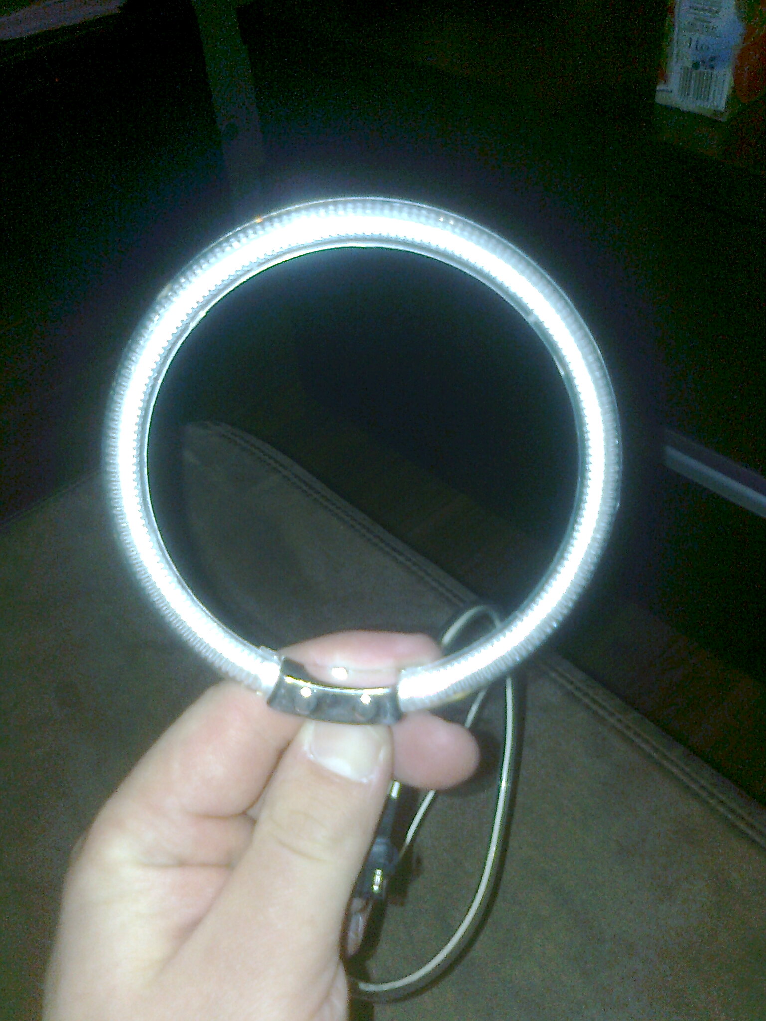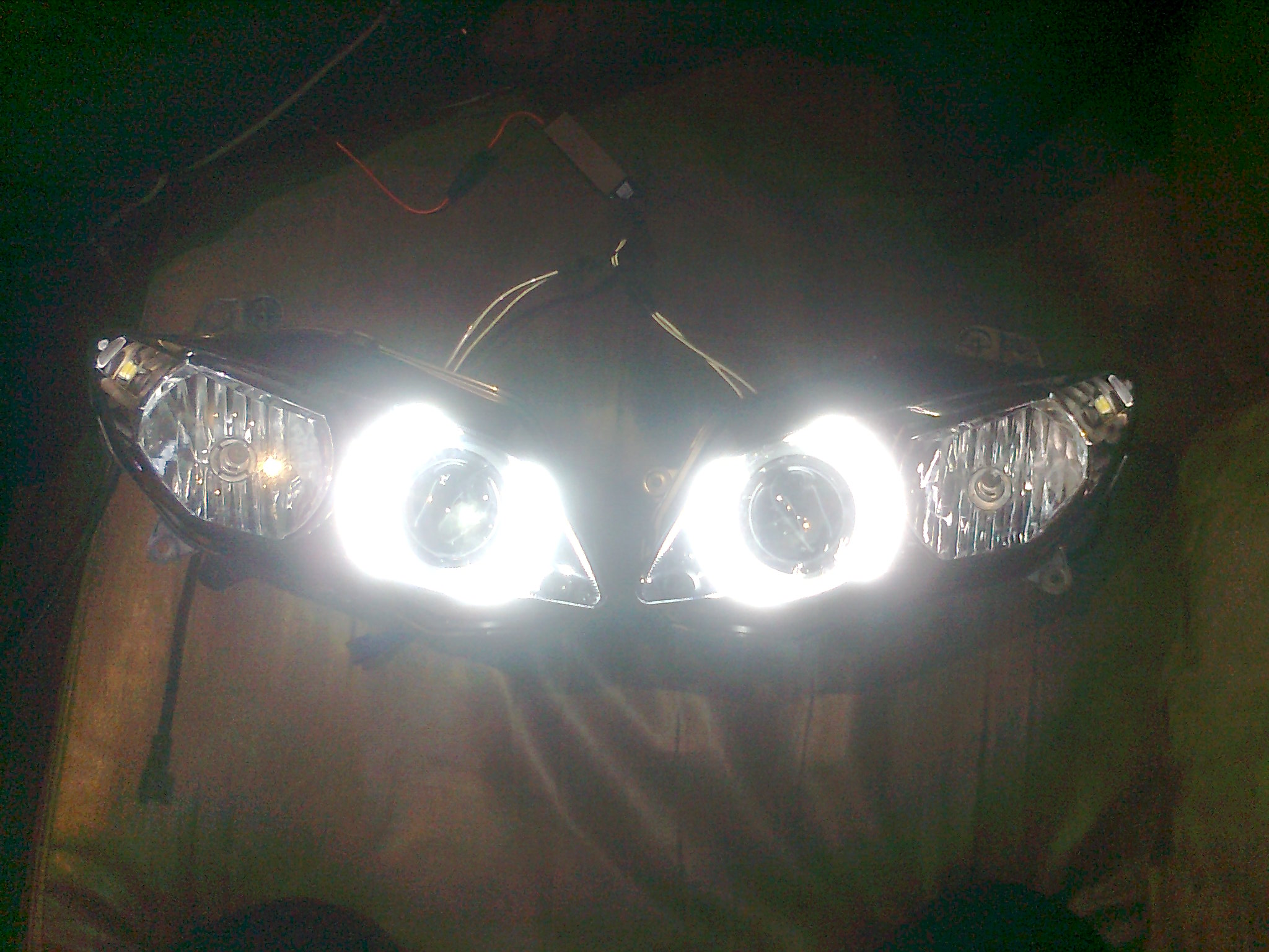 Klej nalozylem w trzech punktach tj. na sruby obudowy soczewki. Miejsca laczenia sa praktycznie niewidoczne na wylaczonych jak i na wlaczonych ringach :) Kabel zasilajacy pociagnalem przez dekiel od mijania (zalozone mam ksenony, pod nie zrobilem mala dziurke w deklu) owa dziurka wychodzi rowniez kabel zasilajacy ring. Wszystko owine w peszel. Przetwornice umieszcze razem z przetwornicami od ksenonow tj. pod szyba za licznikiem, mocowanie do stelaza. Po calkowitym zamontowaniu lamp wrzuce foto :)