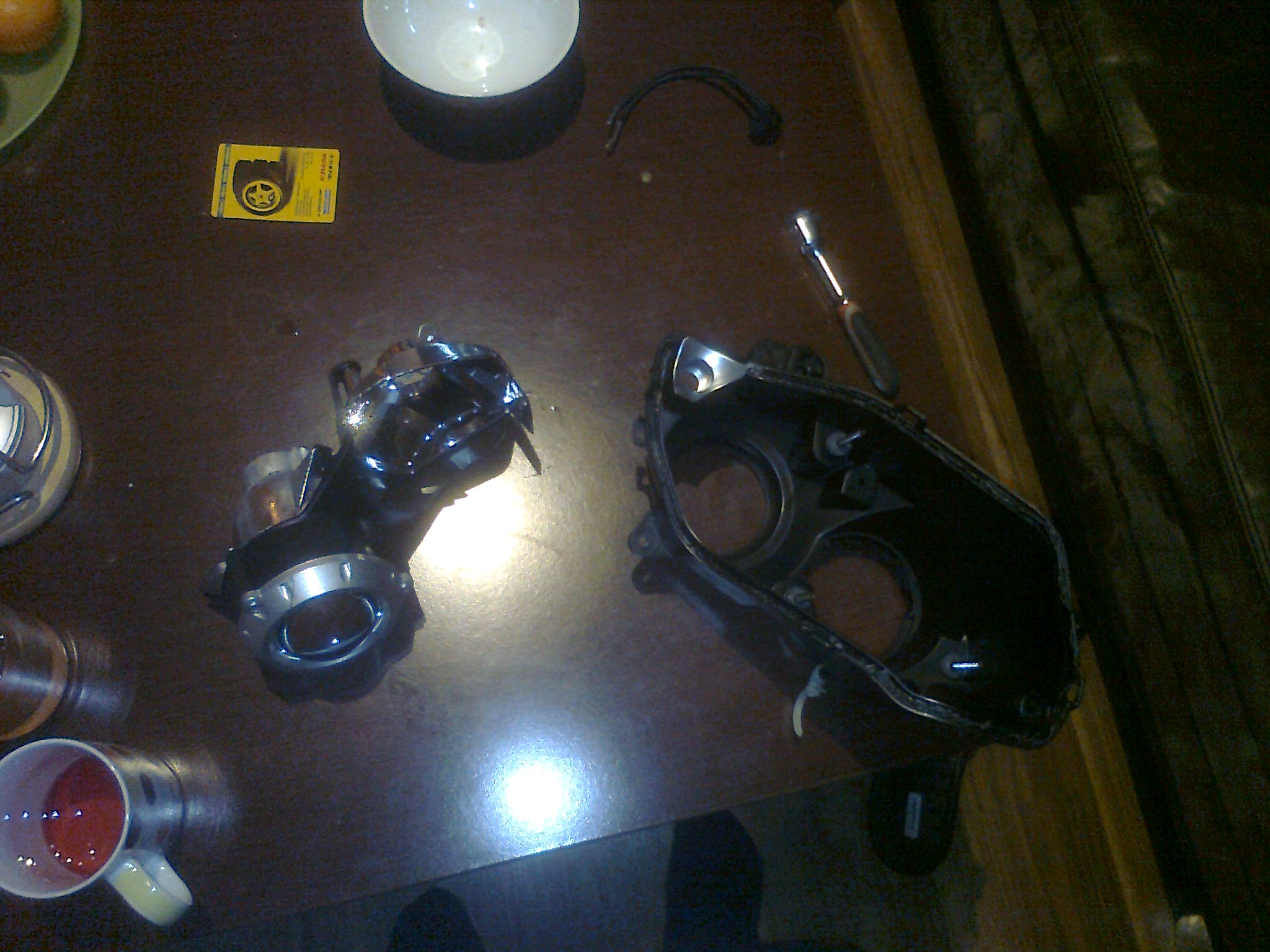 Cala operacja zajela ok 4h z racji tego ze kupilem nowe lampy UK. Poprzednie byly EU ale mialy spawane uchwyty. Najpierw musialem zamienic srodki z korpusami :)