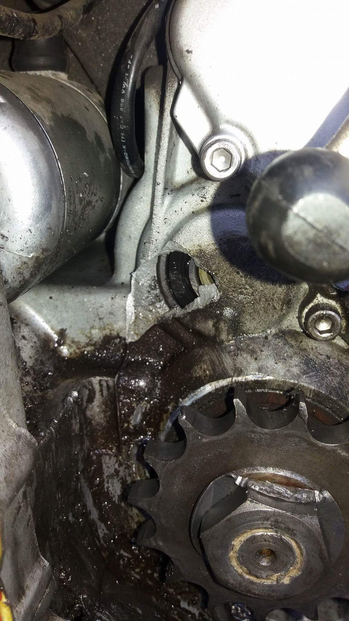Witam podczas jazdy zerwał mi się łańcuch wciągło go przy zebadce zdawczej i uszkodził element silnika ( karter) mała strzelina przez która wyciekł olej , silnik pali , boegi chodza wszystko chyba ok , mam pytanie odnosnie tego co moge zrobic :( oczywiscie jest opcja dac na złom ale chciałbym jakos tego uniknąć :( mozecie cos doradzic ???