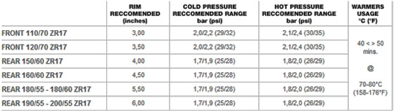 1,4-1,5 na zimno dla PIRELLI i METZELER na gorąco zaraz po zjeździe z toru ma być 1,6
