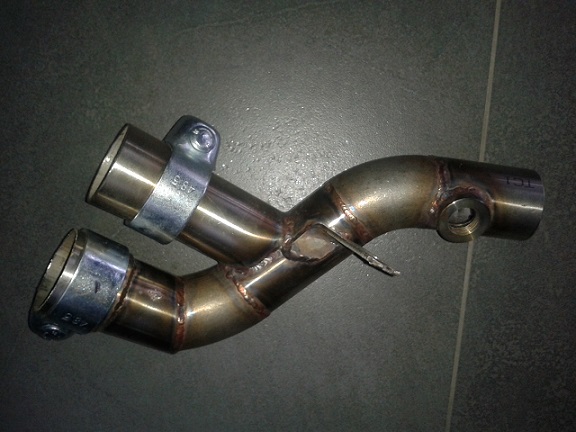 Ty masz zrobione ze jedna rura wbija sie w druga i powstaje dla jednej rury kat wpadania spalin, moim zdaniem ogranicza to ujscie spalin. Lepszym rozwiazaniem bedzie zejscie obu rur w jedna sciecie czubka i zakonczenie rura.