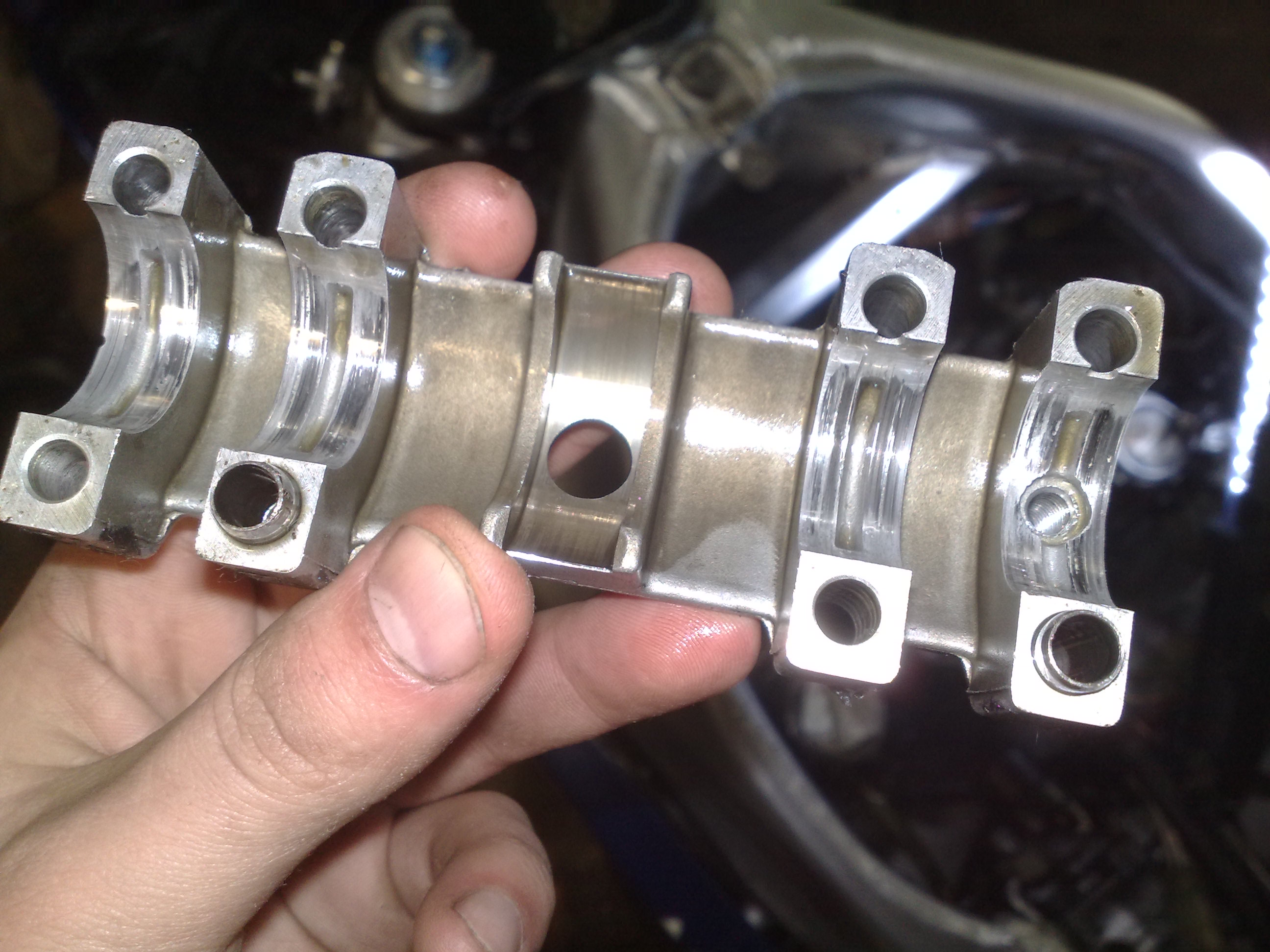Zatarły się tylko panewki na wałkach ssących, od wydechowego są gładziutkie, czyli jakieś ciśnienie oleju musiało tam pójść, a mogło doktorkiem zasyfić kanał smarujący?