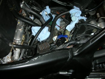 tymi szmatkami zakrylem przewody ktore sa podlaczone do baku zeby nic mi tam nie wlecialo bo troche tak postoi rozebrany bo bede malowal zima